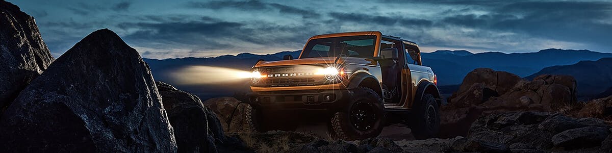 The Ford Bronco and the Ford Bronco Sport are equipped to handle even the grittiest of adventures, tried and tested in the Johnson Valley Desert and the Baja 1000. Navigate off-road terrains, steep inclines and sharp rocks with Trail Control, Trail Turn Assist and a Multi-Terrain Management system. The 2021 Bronco challenges the competition with best-in-class Departure and Breakover, Ground Clearance and Water Fording. With its removable doors and roof, the Ford Bronco is en route to becoming the most adventure-ready vehicle of the decade.